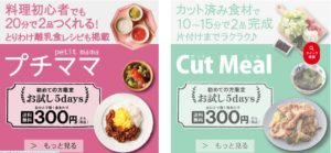 お試し後はCutMealは2人用、6,050円(5日間)、ネット注文で5日前までの注文締め切りです。コースは都度変えることができます。身体が少し動くようになってからはプチママコース(野菜はカットされていない)を試したりもしました。プチママのほうは子どもが好きそうなメニューが多く、カットされていない分少し調理時間はかかりますが、野菜が多めに届くのでボリューミーにできます。お値段も2人用5,660円(5日間)と少しお安めでした。