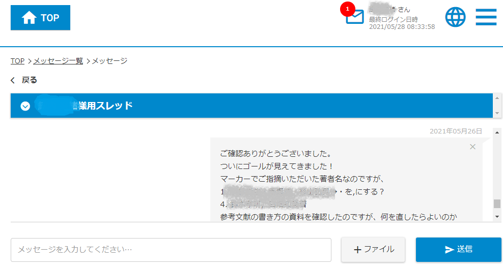 課題もこのメッセージスレッドから提出をします。課題は修正や再提出などをしてフィードバッグが返され評価をつけてもらえます。