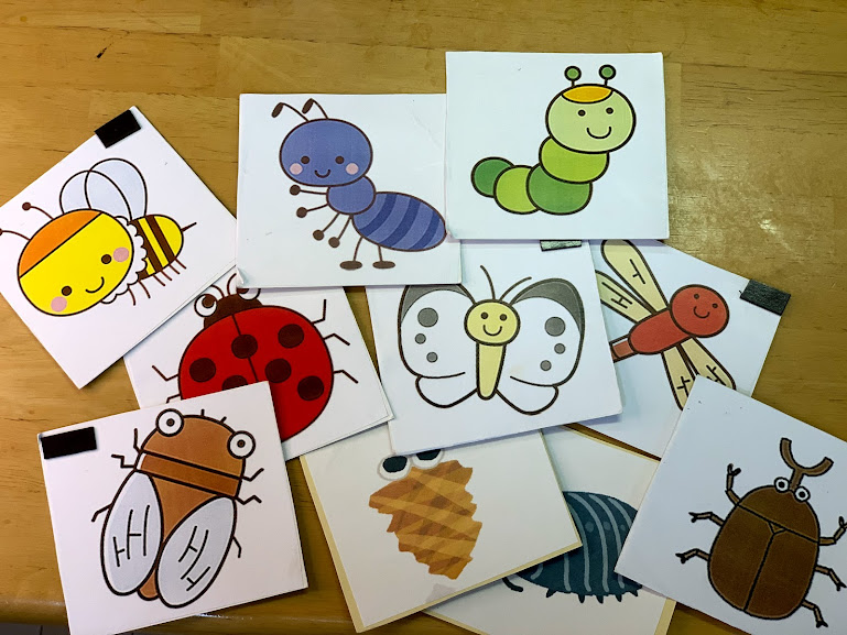 ほかにも昆虫の影のクイズをしたり虫捕りごっこを楽しんだりと、ボキャブラリーを覚えながら色々と楽しめます。昆虫の単語はあまり触れる機会が少ないですがDragonflyやLadybugなど格好良い言葉も多く、すぐに覚えてしまう子も。