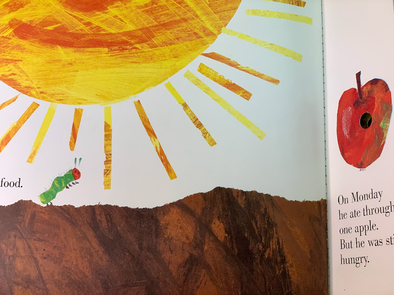 言わずと知れた名作”The very Hungry Caterpillar”。はらぺこな小さなあおむしが色々な食べ物を毎日たくさん食べてさなぎになり蝶になる、というシンプルなストーリーですが絵本に穴が開いていたり果物が一つずつ増えていくなど、楽しい仕掛けがたくさんで小さな子でも飽きずに読み進めることができます。